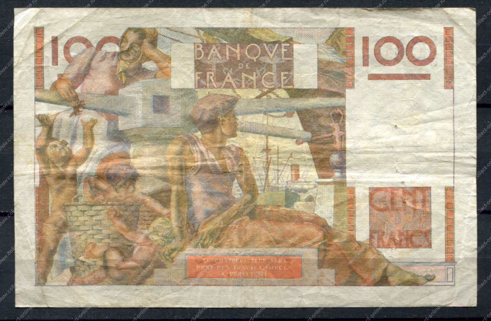 Франция 1954 г. (B 2-1) • P# 128d • 100 франков • фермер и быки • регулярный выпуск • VF* (Product code (SKU): NB-4695)