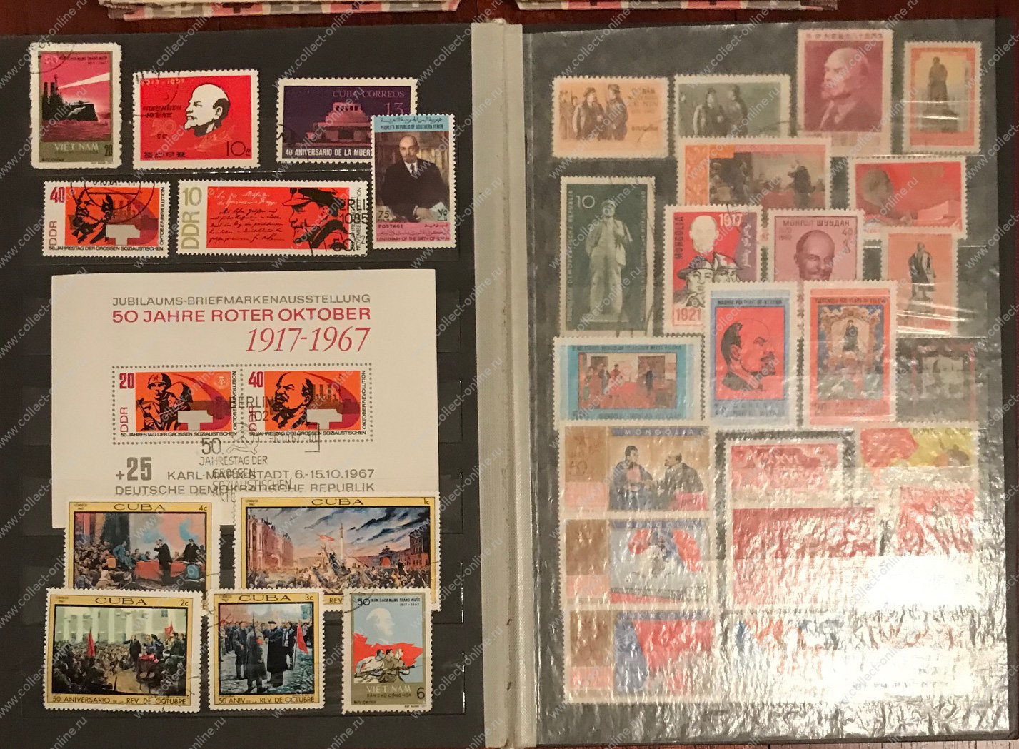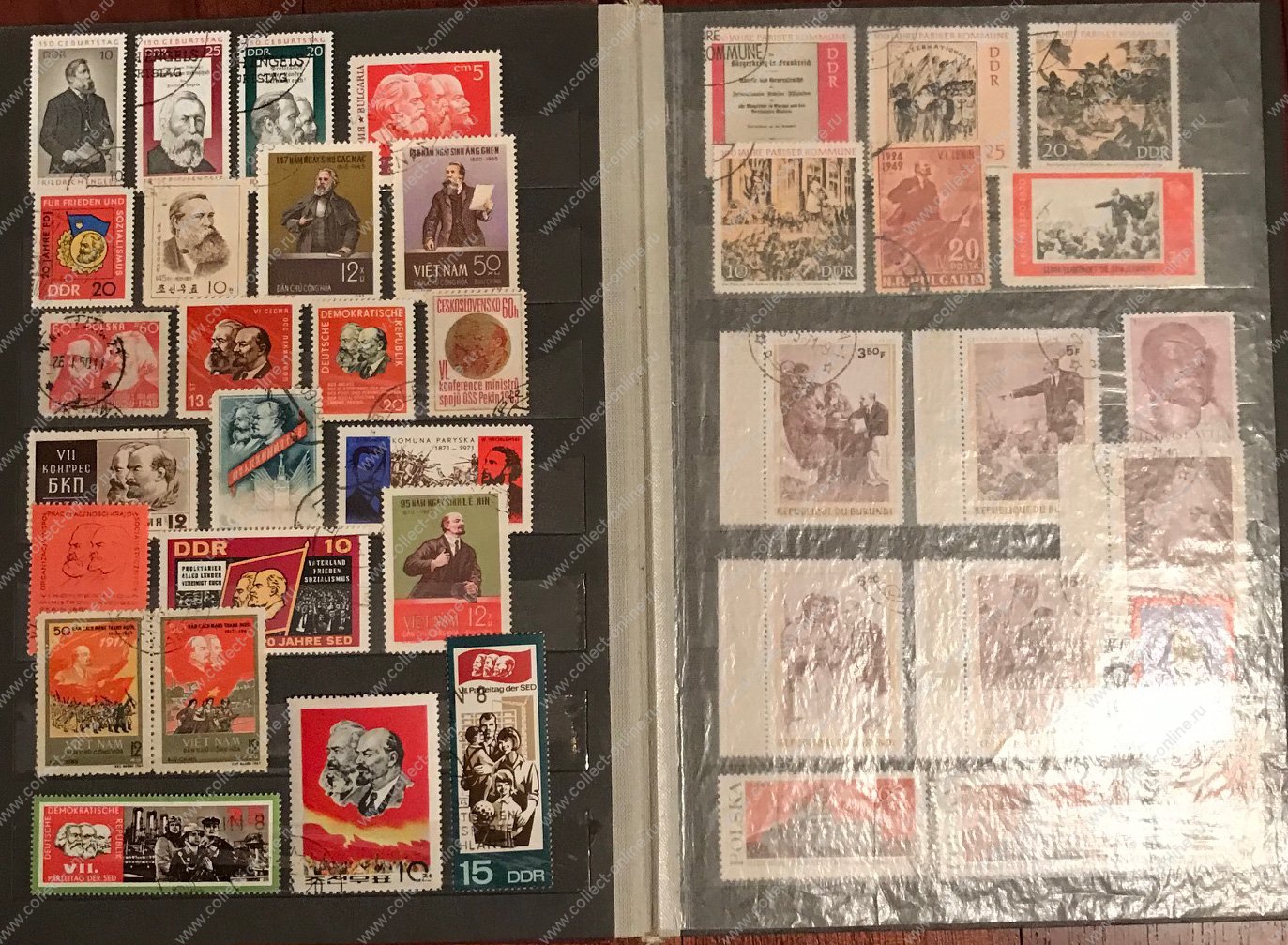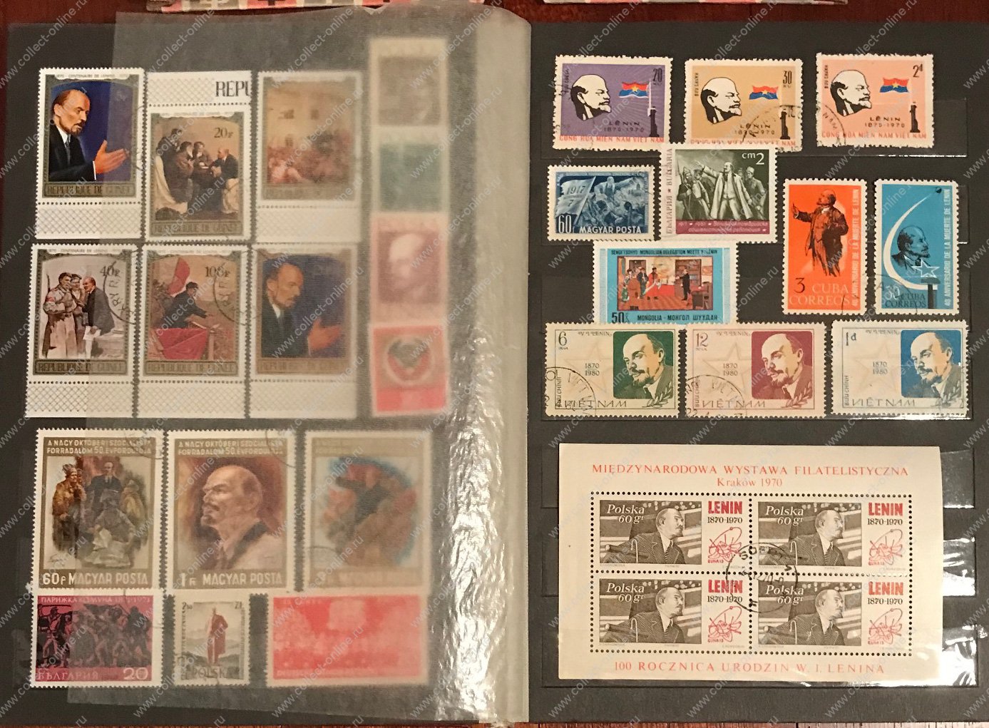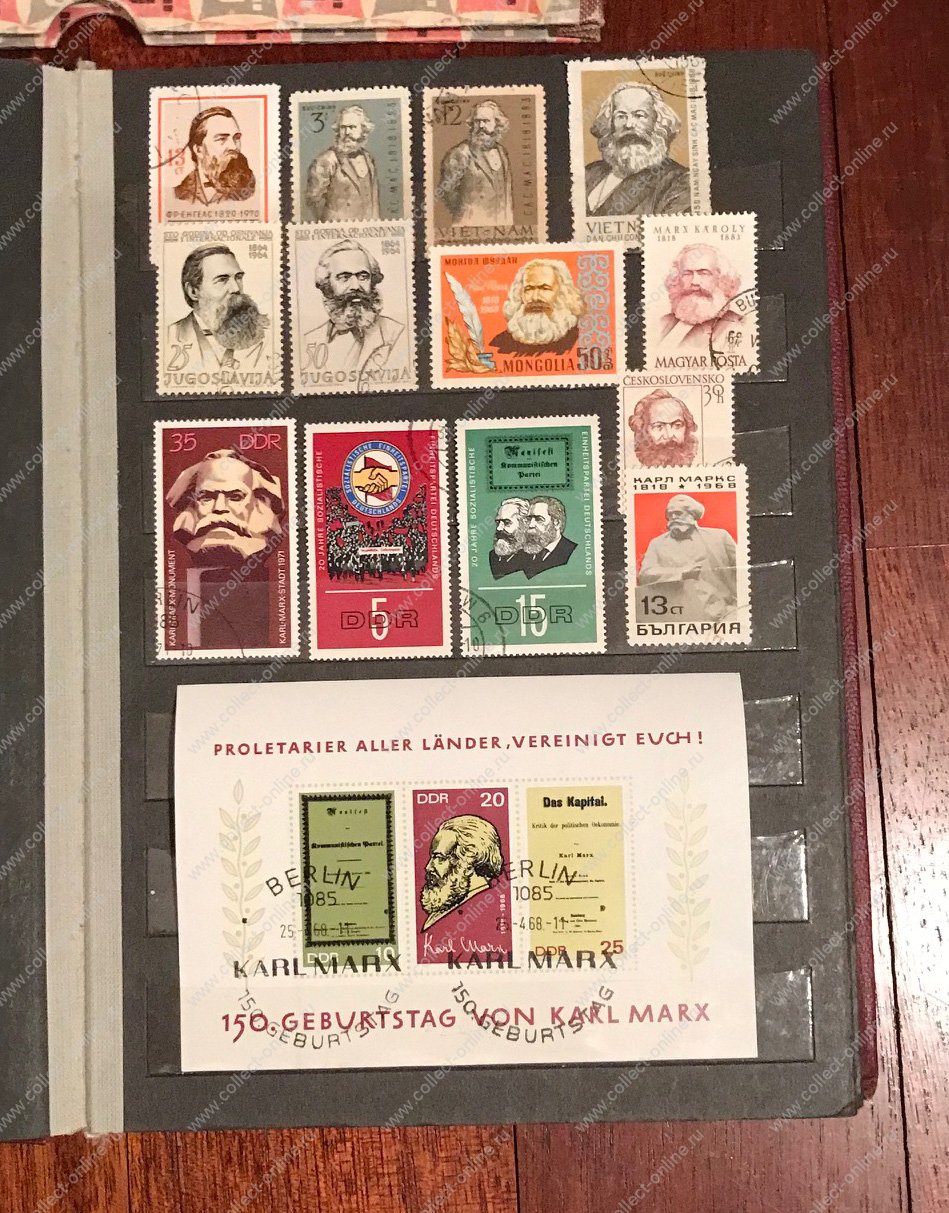 небольшая коллекция иностранных и советских(приблизительно пополам) марок и блоков, посвященная Ленину и ко..