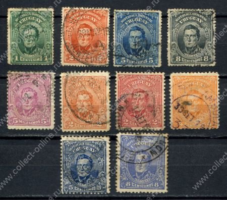 Уругвай 1910-1915 гг. • Sc# 188..206 • 5m. .. 8 c. • Артигас • стандарт (10 марок) • Used F-VF (Артикул: A1-9856)