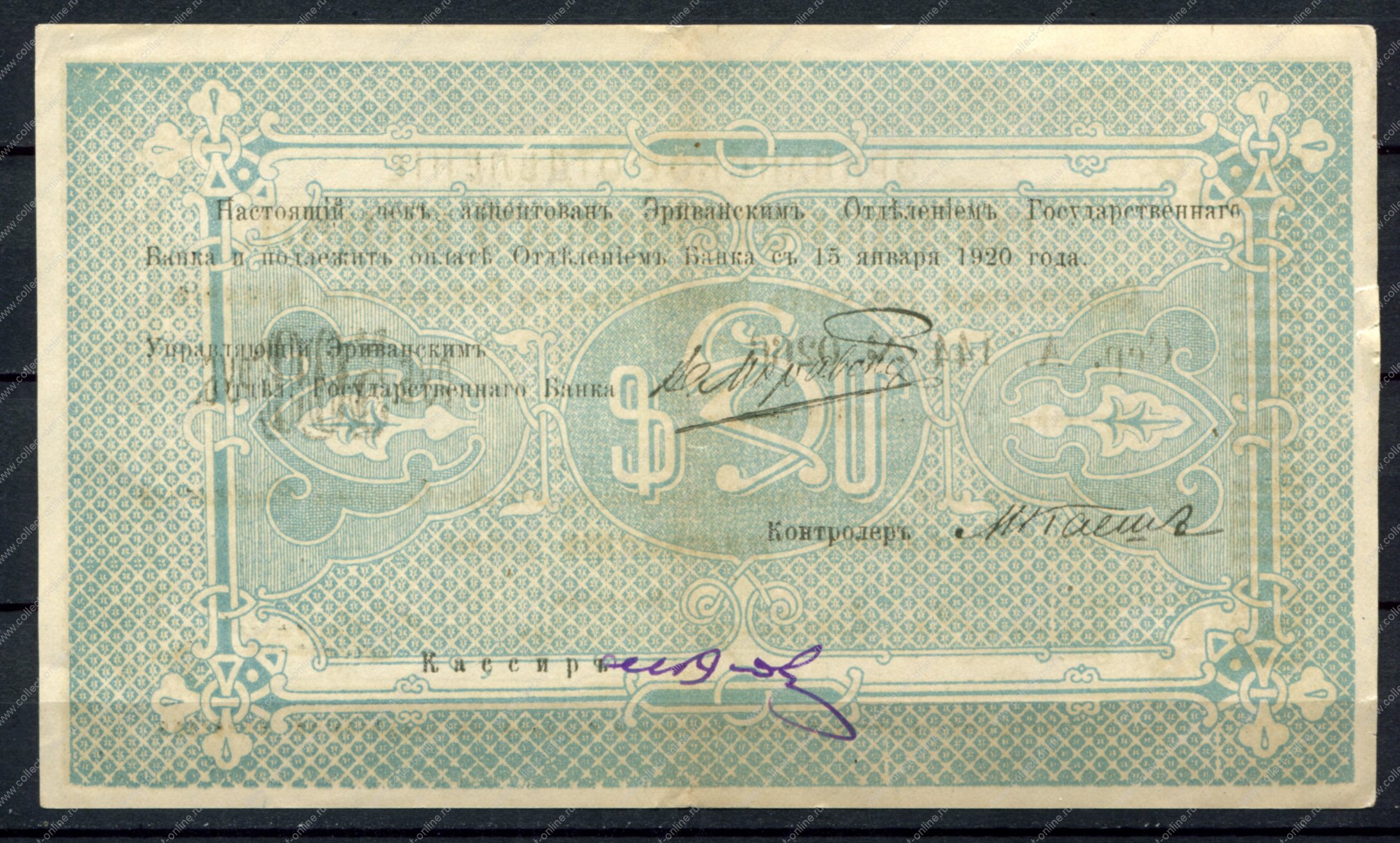 Армения • Эриван 1919 г. • P# 26 A-144 • 500 рублей • чек госбанка • XF-AU* (Product code (SKU): NB-4737-msh)