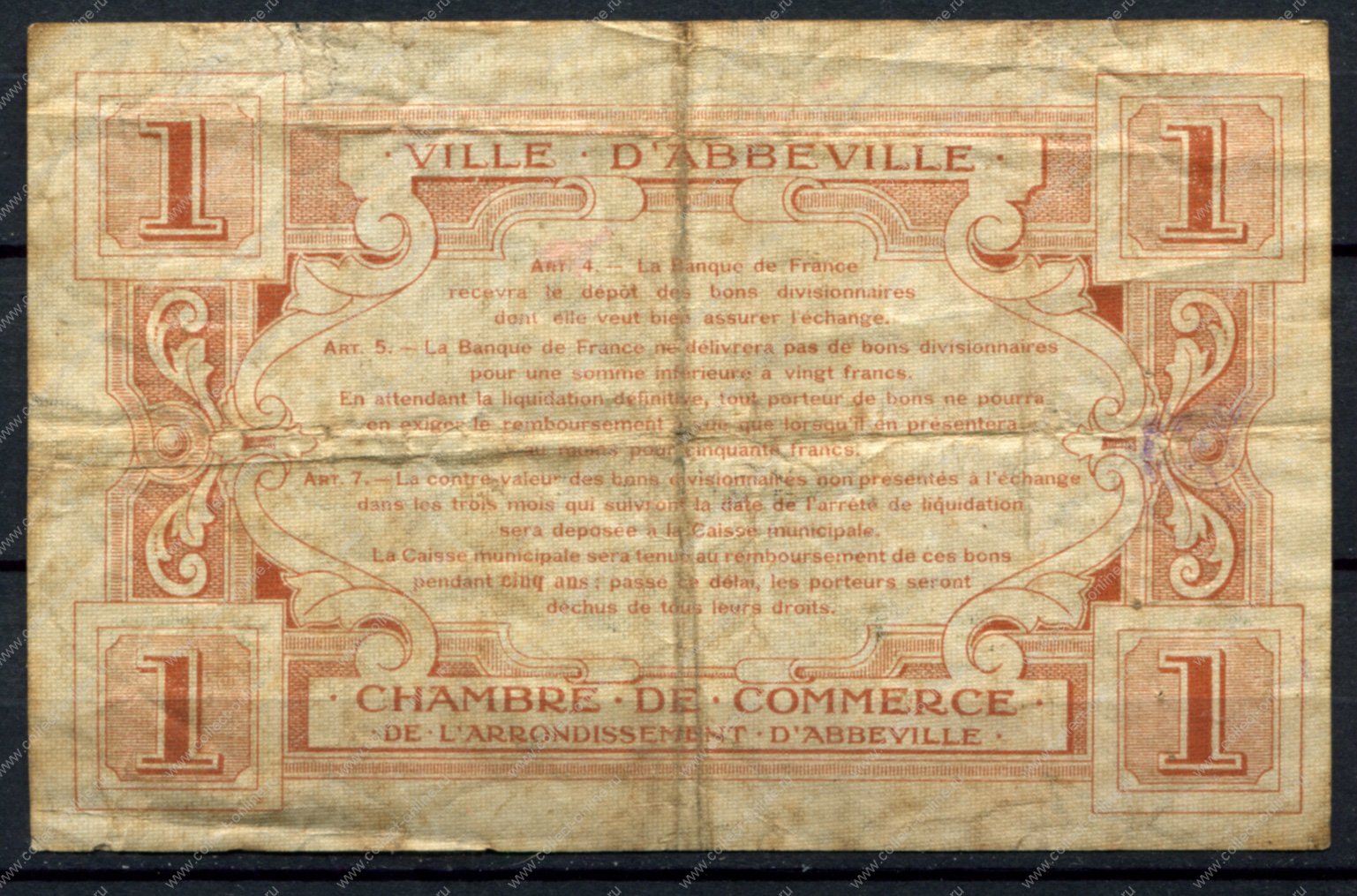 Франция • Абвиль 1920 г. • 1 франк • локальный выпуск • F-VF (Артикул: NB-4736-msh)