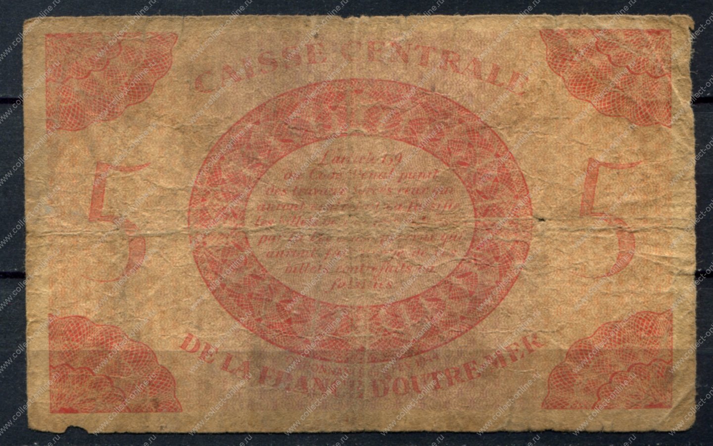 Французская Экваториальная Африка 1944 г. • P# 15b • 5 франков • регулярный выпуск • VG+ (Артикул: NB-4755-msh)