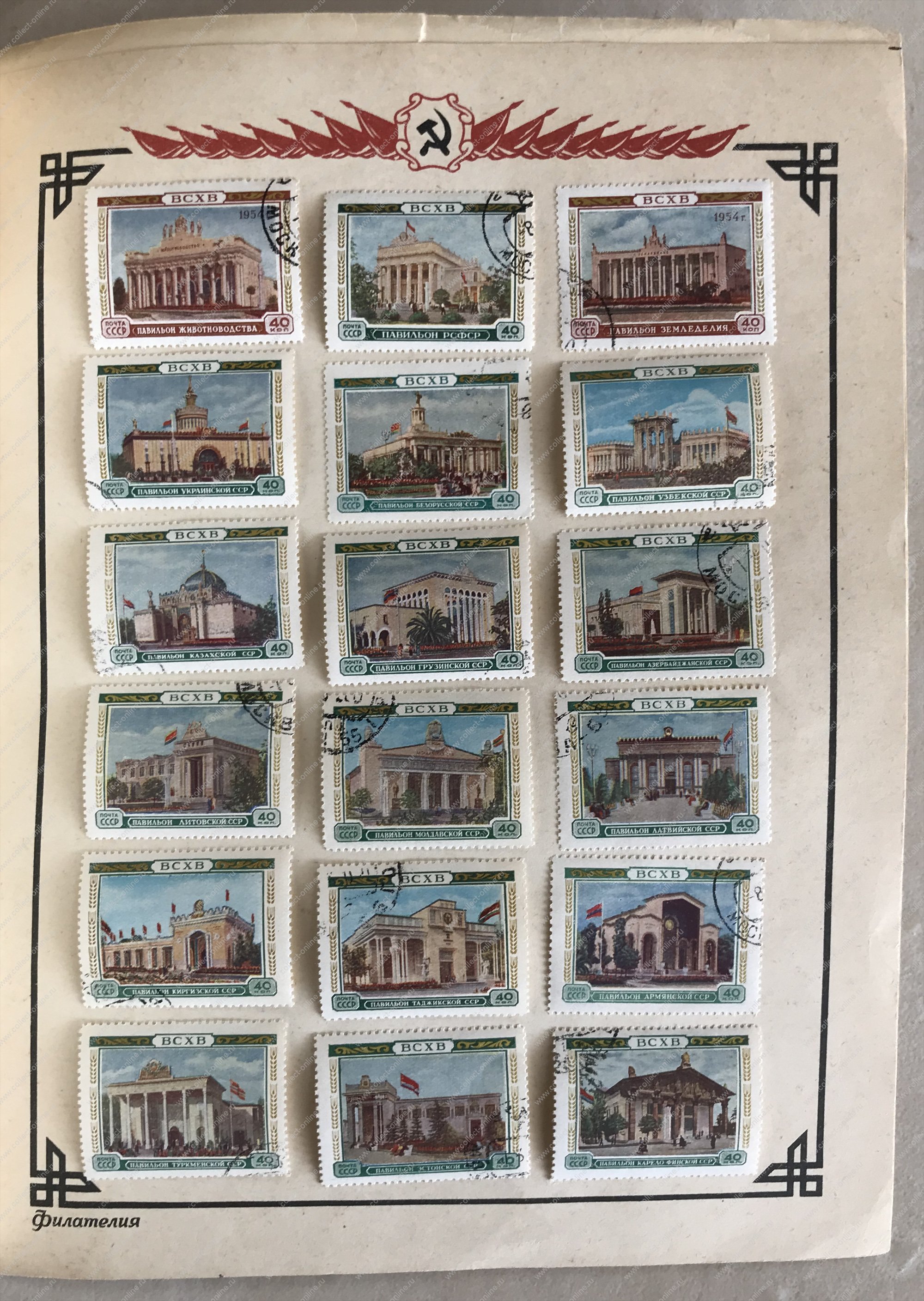набор разных(68) марок СССР с изображением архитектурных объектов Москвы в оригинальном буклете ГФК(ЦФА)