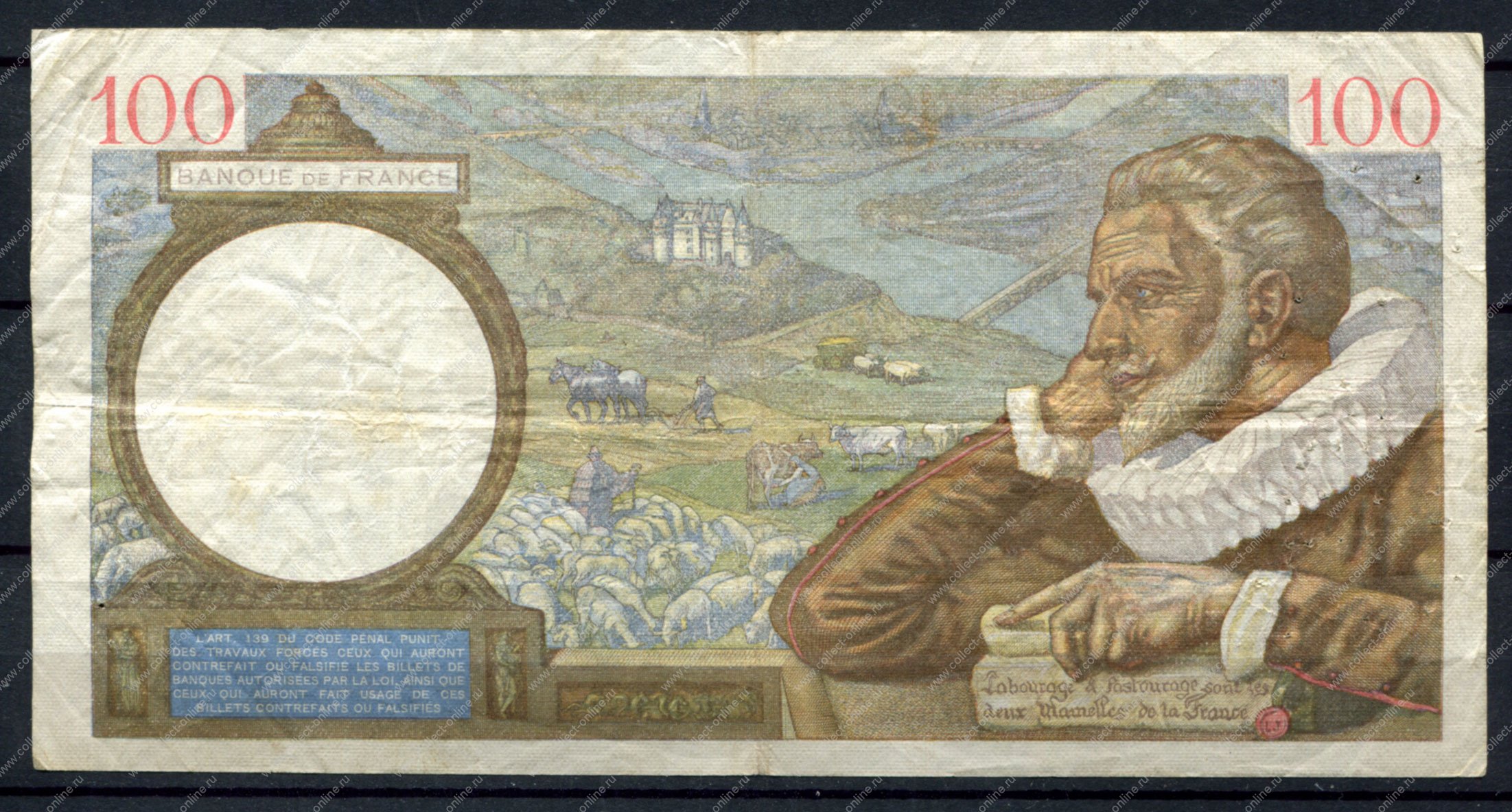 Франция 1939 г. (CN 19-5) • P# 94 • 100 франков • Максимильен де Бетюн • регулярный выпуск • VF-* (Product code (SKU): NB-4705-msh)