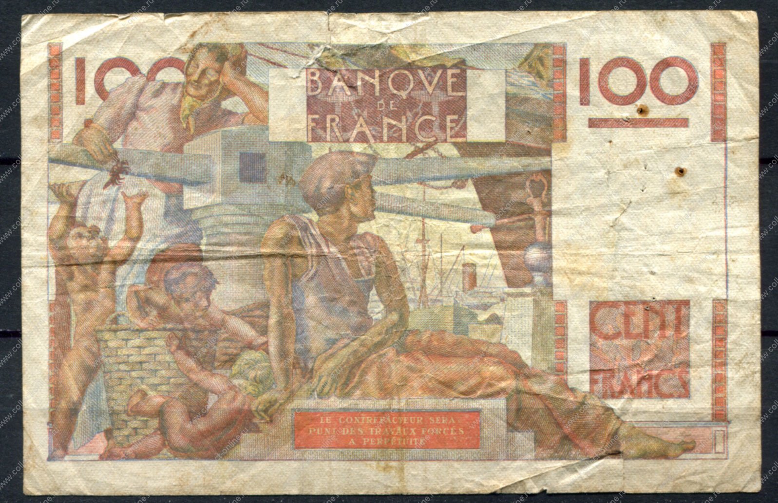 Франция 1946 г. (F 31-5) • P# 128a • 100 франков • фермер и бык • регулярный выпуск • F-VF* (Product code (SKU): NB-4691)