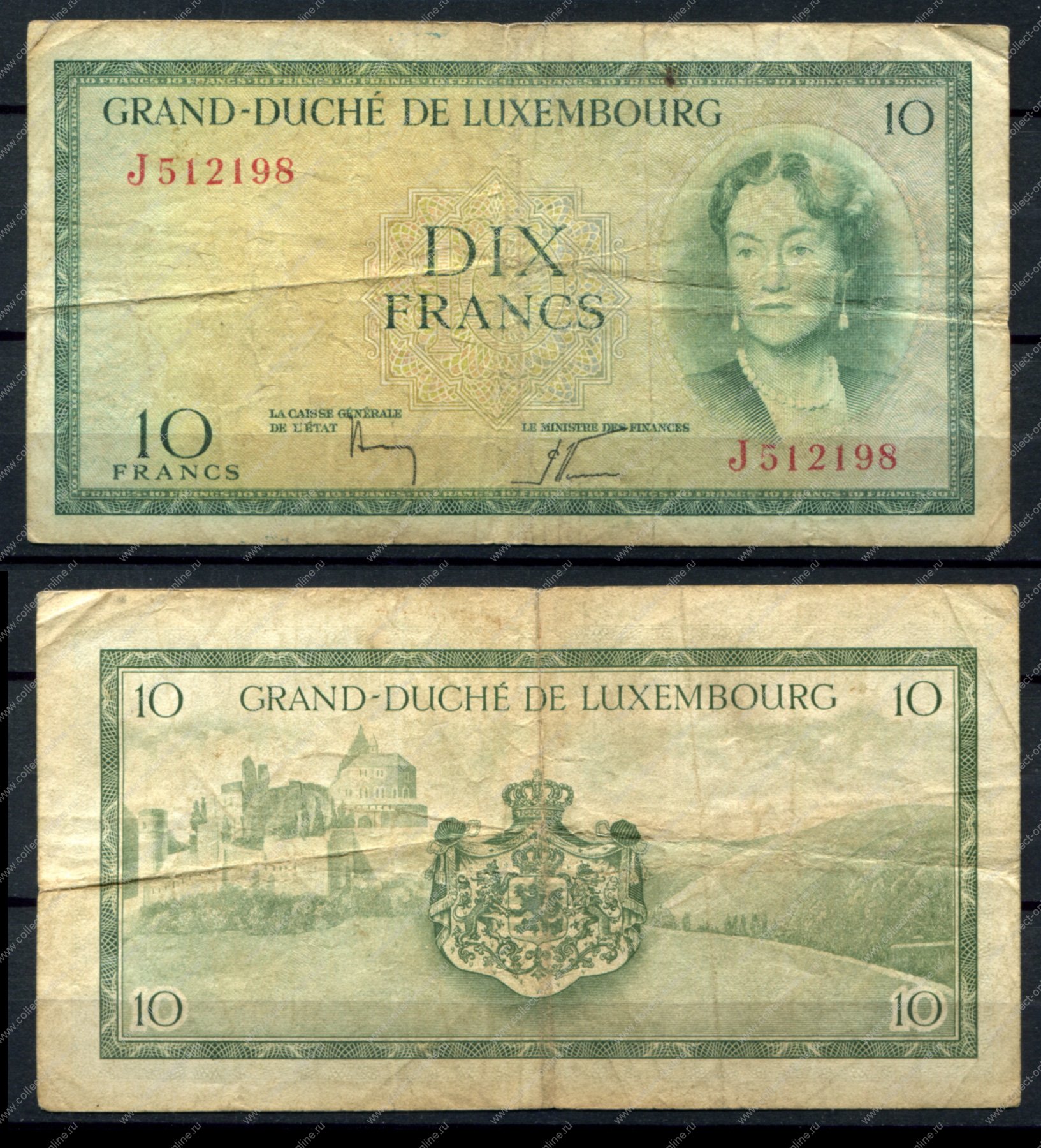 Люксембург 1954 г. • P# 48 • 10 франков • герцогиня Шарлотта • регулярный выпуск • F-VF (Product code (SKU): NB-4779/NB-4636-msh)