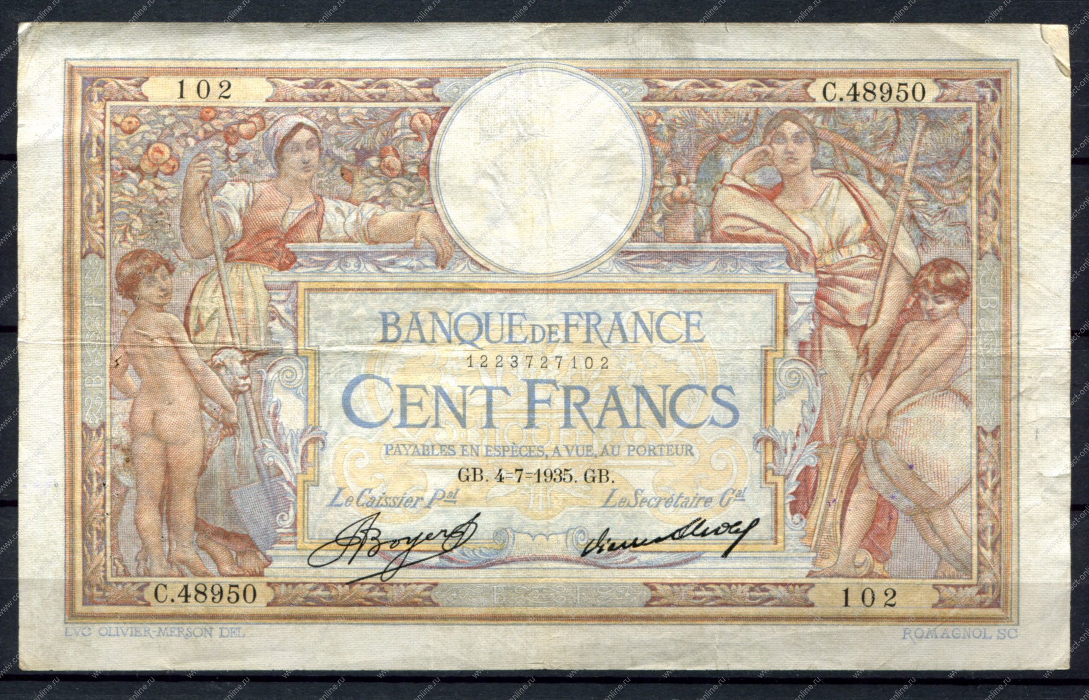 Франция 1935 г. (GB 4-7) • P# 78c • 100 франков • регулярный выпуск • VG (Артикул: NB-4716-msh)