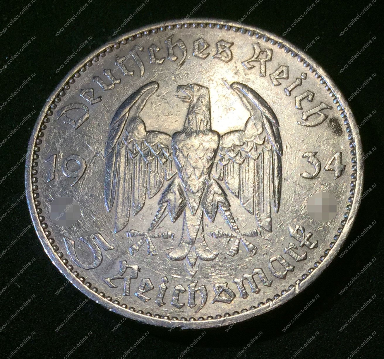 Германия • 3-й рейх 1934 г. E • KM# 83 • 5 рейхсмарок • (серебро) • символ Рейха • Кирха(церковь) • регулярный выпуск • XF+ (Product code (SKU): AO-4403)