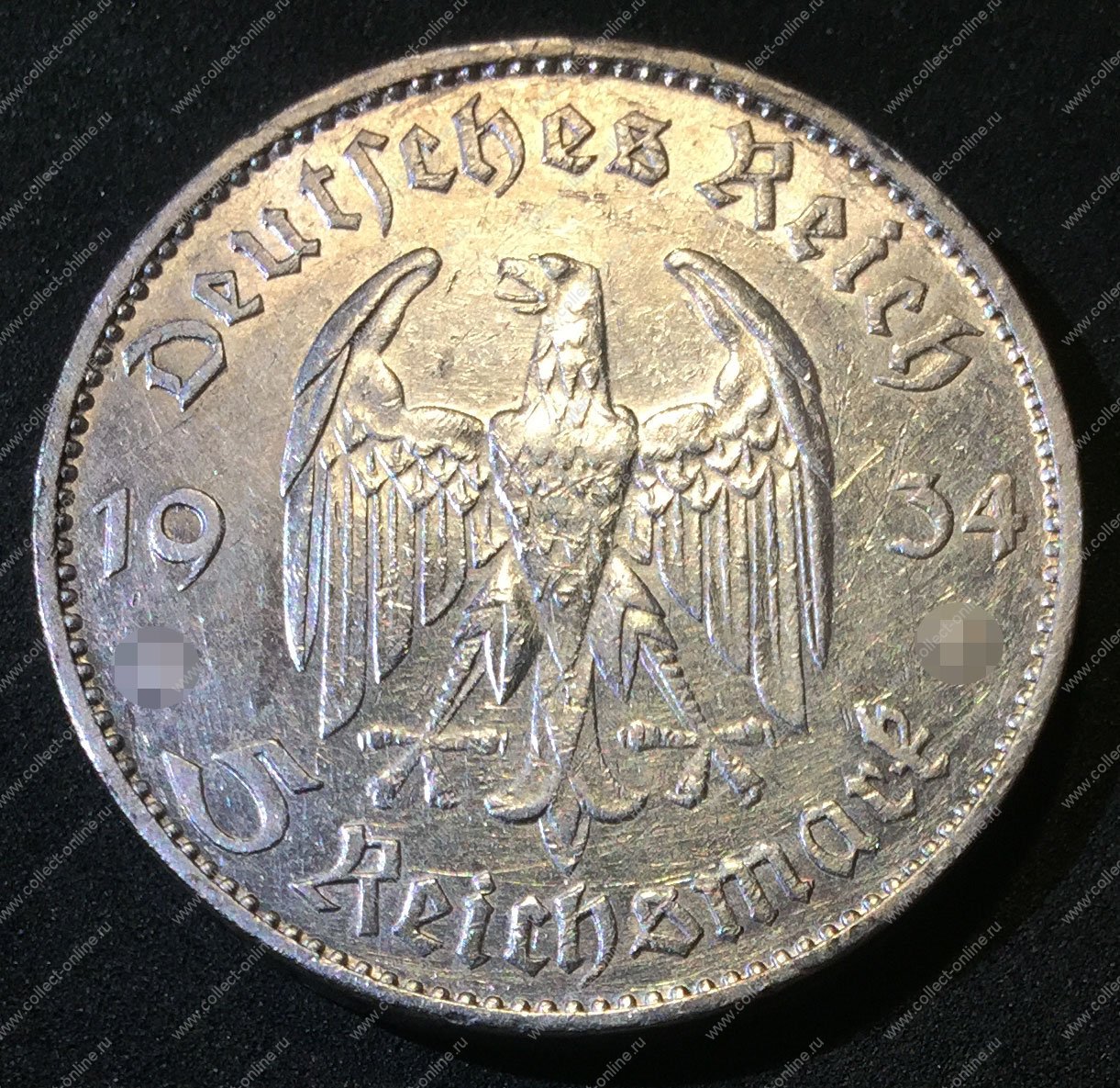 Германия • 3-й рейх 1934 г. G • KM# 83 • 5 рейхсмарок • (серебро) • символ Рейха • Кирха(церковь) • регулярный выпуск • XF-AU (Артикул: AO-4401)