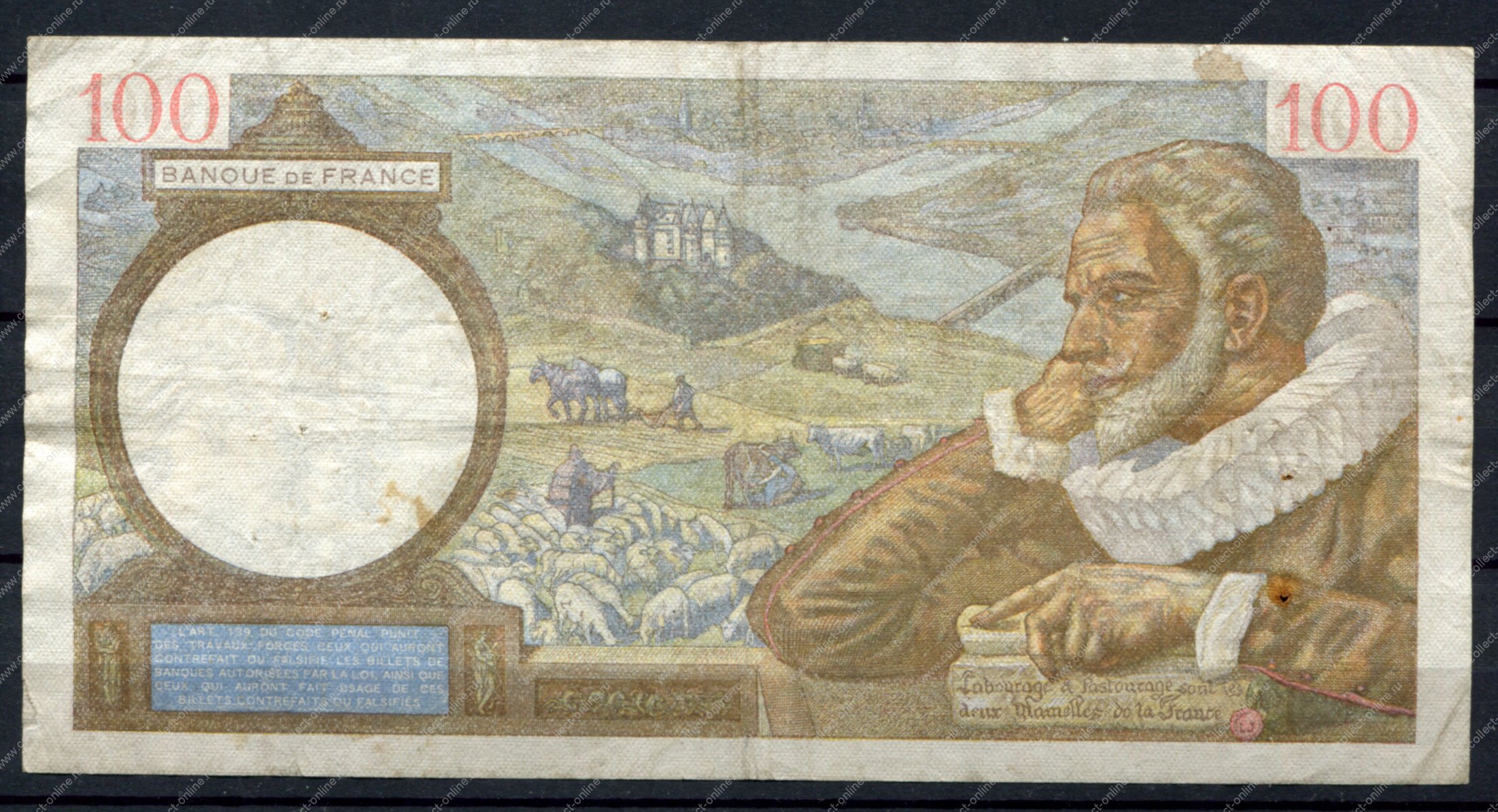 Франция 1942 г. (EX 5-3) • P# 94 • 100 франков • Максимильен де Бетюн • регулярный выпуск • VF* (Product code (SKU): NB-4706-msh)
