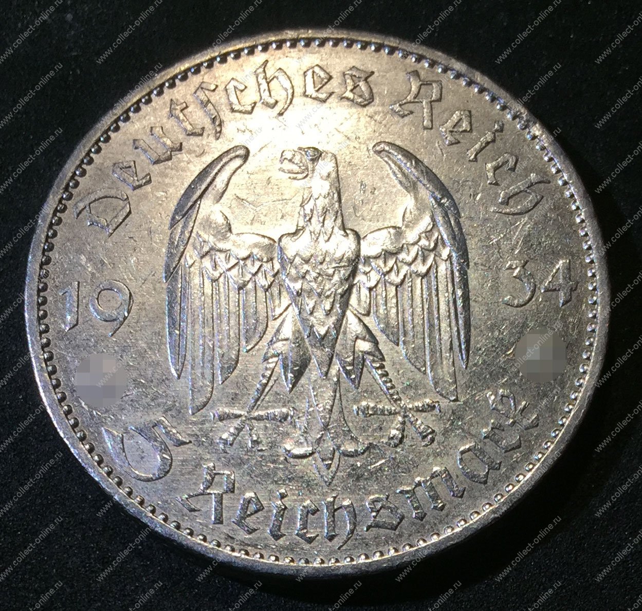 Германия • 3-й рейх 1934 г. A • KM# 83 • 5 рейхсмарок • (серебро) • символ Рейха • Кирха(церковь) • регулярный выпуск • XF-AU (Product code (SKU): AO-4404)